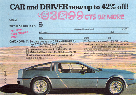 |  | Cutty Sark ad featuring John DeLorean and the NEW